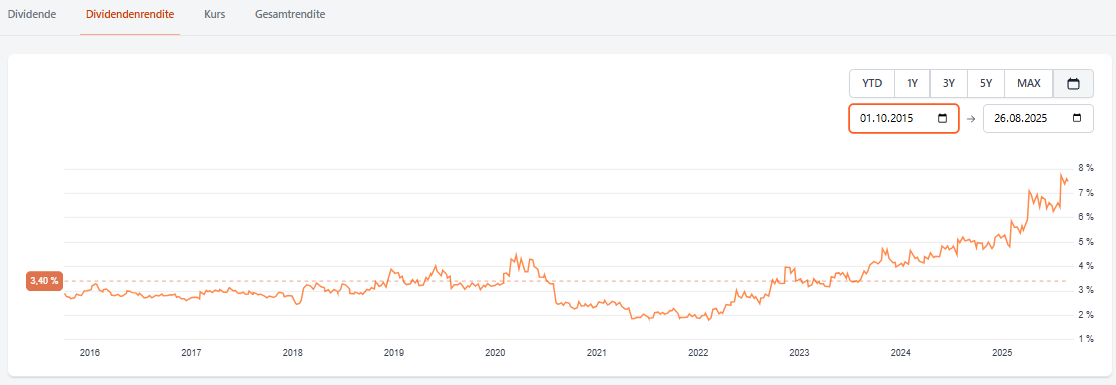 Die Dividendenrendite liegt aktuell auf einem Allzeithoch: