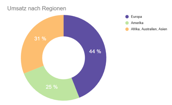 Das Unternehmen ist zudem international breit aufgestellt. Die Verteilung des Umsatzes nach Regionen kann der folgenden Grafik entnommen werden: