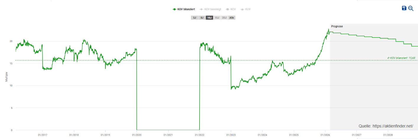 Dabei erscheint das heutige KGV von 22,1 sehr teuer zu sein.